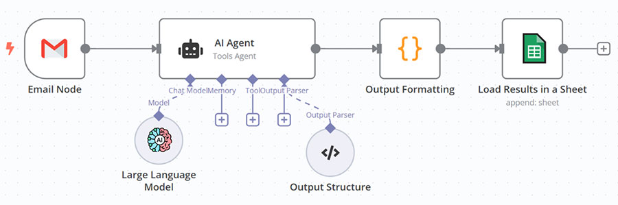 Сучасні версії n8n містять нативні функції AI для обробки тексту, аналізу даних і генерації контенту. Інтеграція з популярними AI-сервісами надає можливість створювати розумні сценарії, які автоматично класифікують запити, генерують відповіді чи аналізують настрої користувачів.